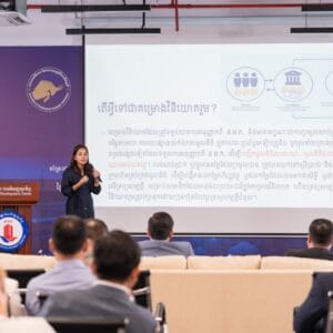 ក្នុងនោះផងដែរក៏មានការចែករំលែកប្រធានបទពី លោកស្រី ប៉ុន ពេជ្រនារី ជាអនុប្រធានការិយាល័យ គ្រប់គ្រងការបោះផ្សាយលក់មូលបត្រ បានស្តីពីការបង្កើតនិងការចុះបញ្ជីមូលនិធិនៃគម្រោងវិនិយោគរួម របស់និយ័តករមូលបត្រកម្ពុជា។